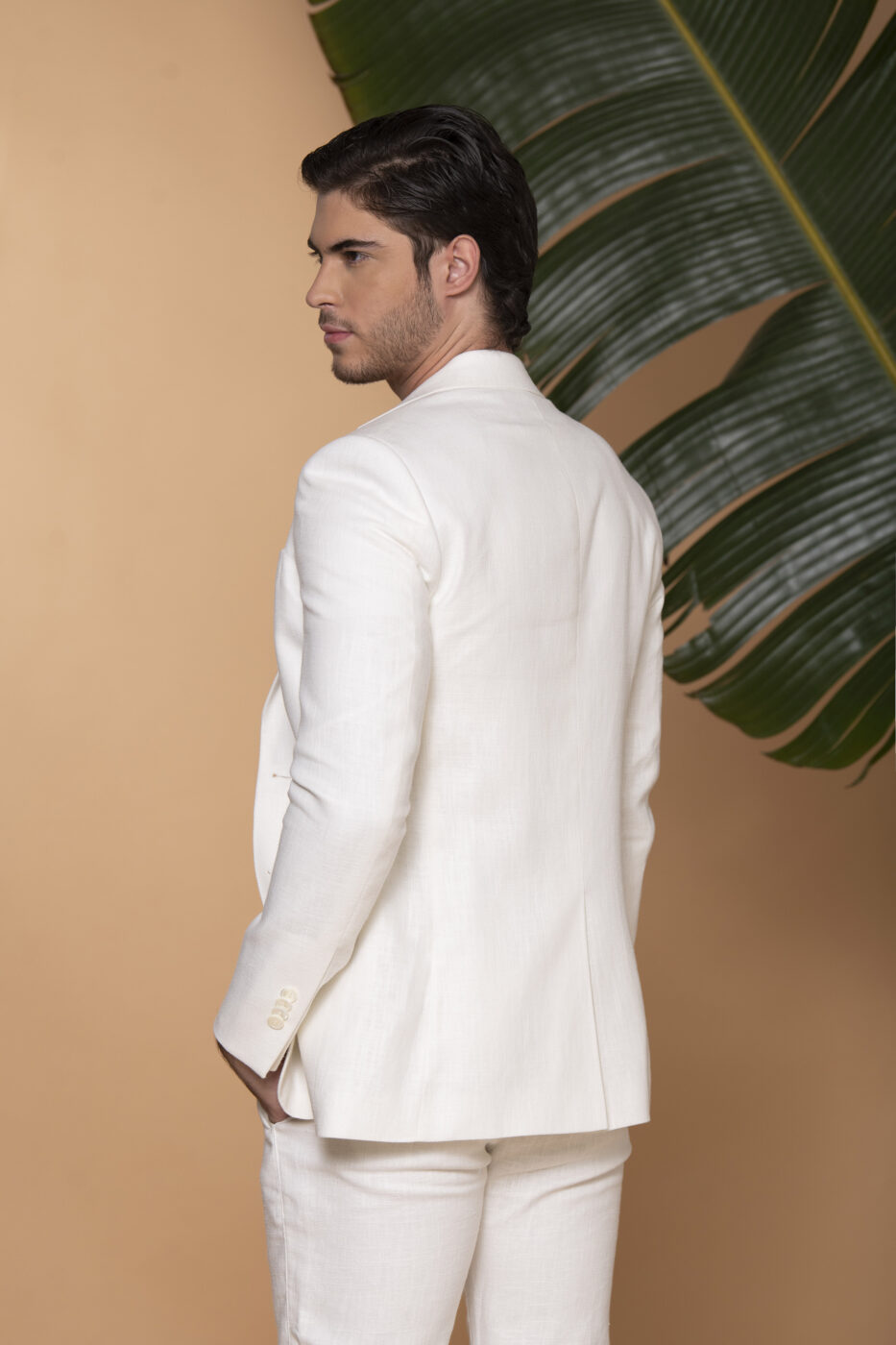 Chaqueta confeccionada en tejido 100% lino. Cuello con solapa en clásica y ojal. Puño abotonado. Cierre mediante dos botones. Dos bolsillos doble rinete. Un bolsillo a la altura del pecho. Bolsillos interiores. Bajo con una abertura central.