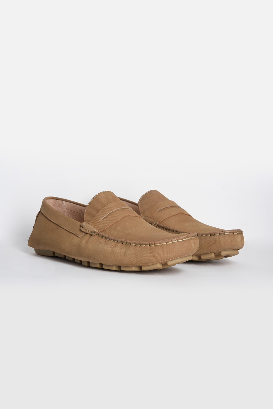 Mocasin Nubuck Line Camel – Suela Salomon Crepe – 100% Cuero – Forro Interior Y Planta De Cuero